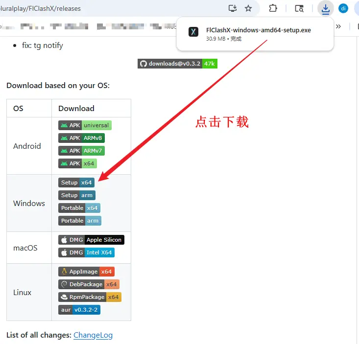 以下是 FlClashX 各版本的下载链接。推荐下载最新版本以获得最佳体验。